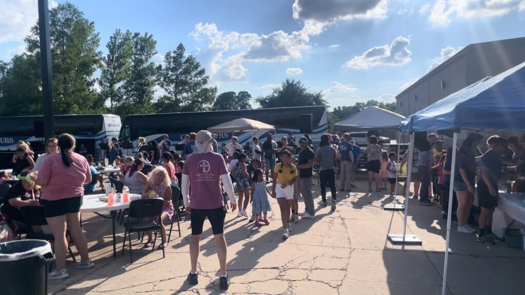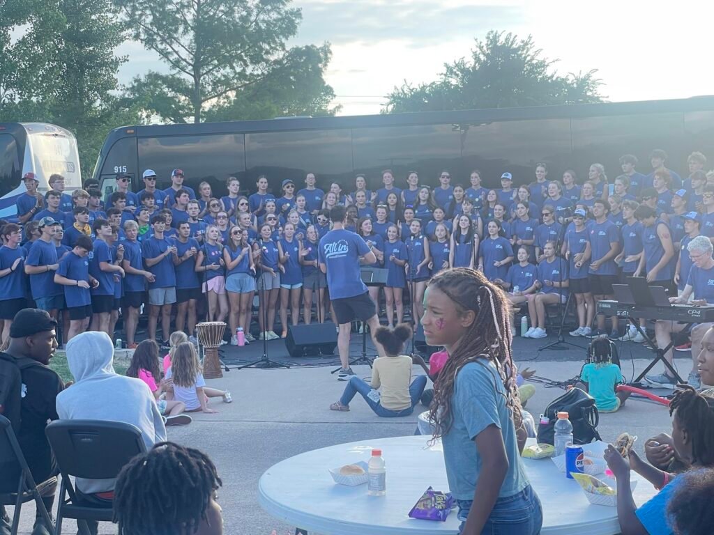 To wrap up their mission, all the teams gathered on the fourth day for a grand community event in the parking lot of a local church. It was a true celebration, with a cookout serving hotdogs, hamburgers, chips, drinks, and more—all provided free to the community. Families enjoyed jump houses, face painting, and games, while the Dawson Christian band and choir performed, filling the air with uplifting music.